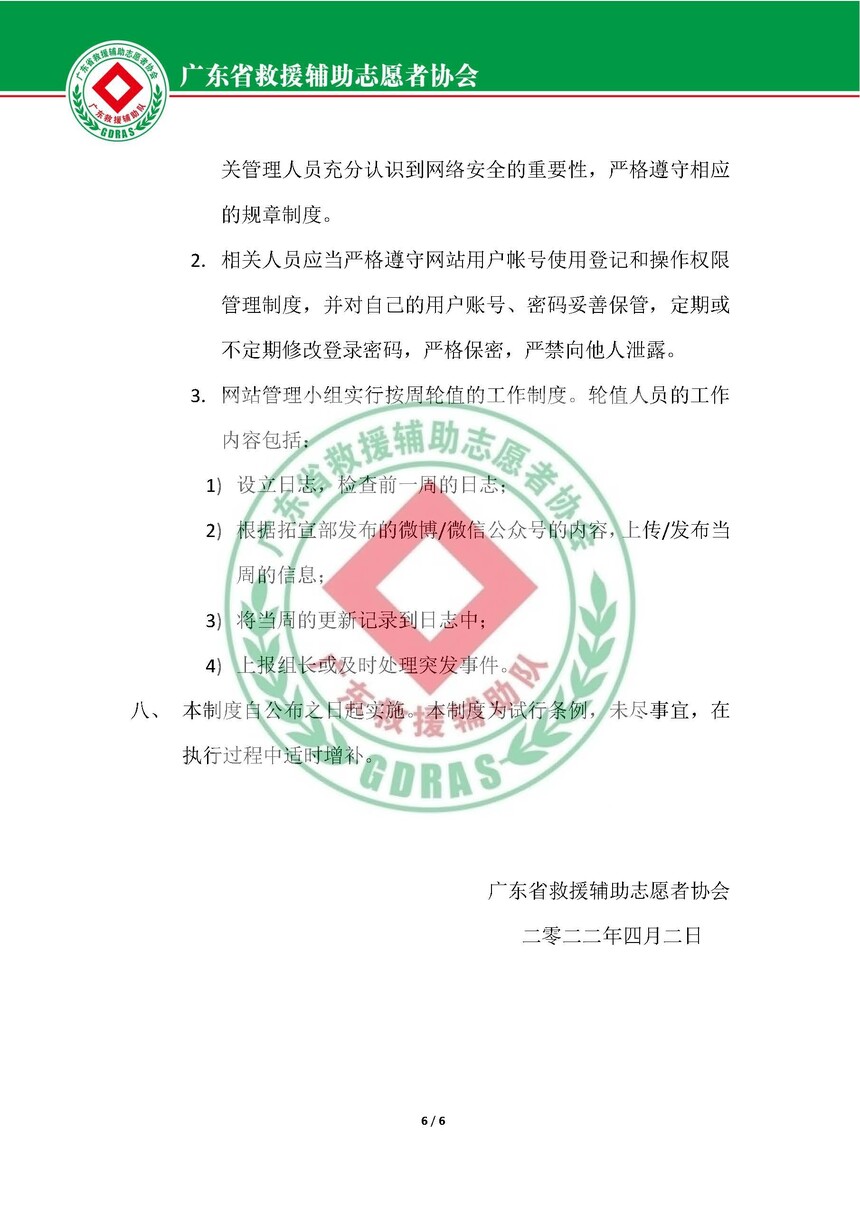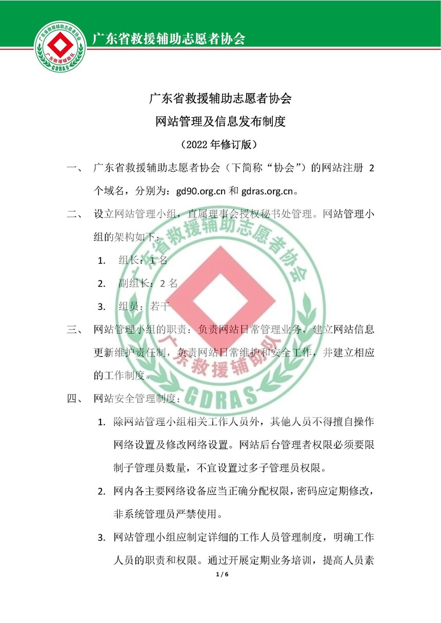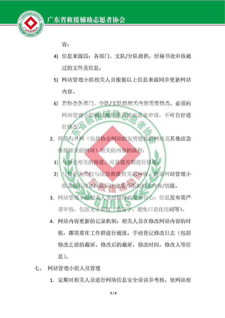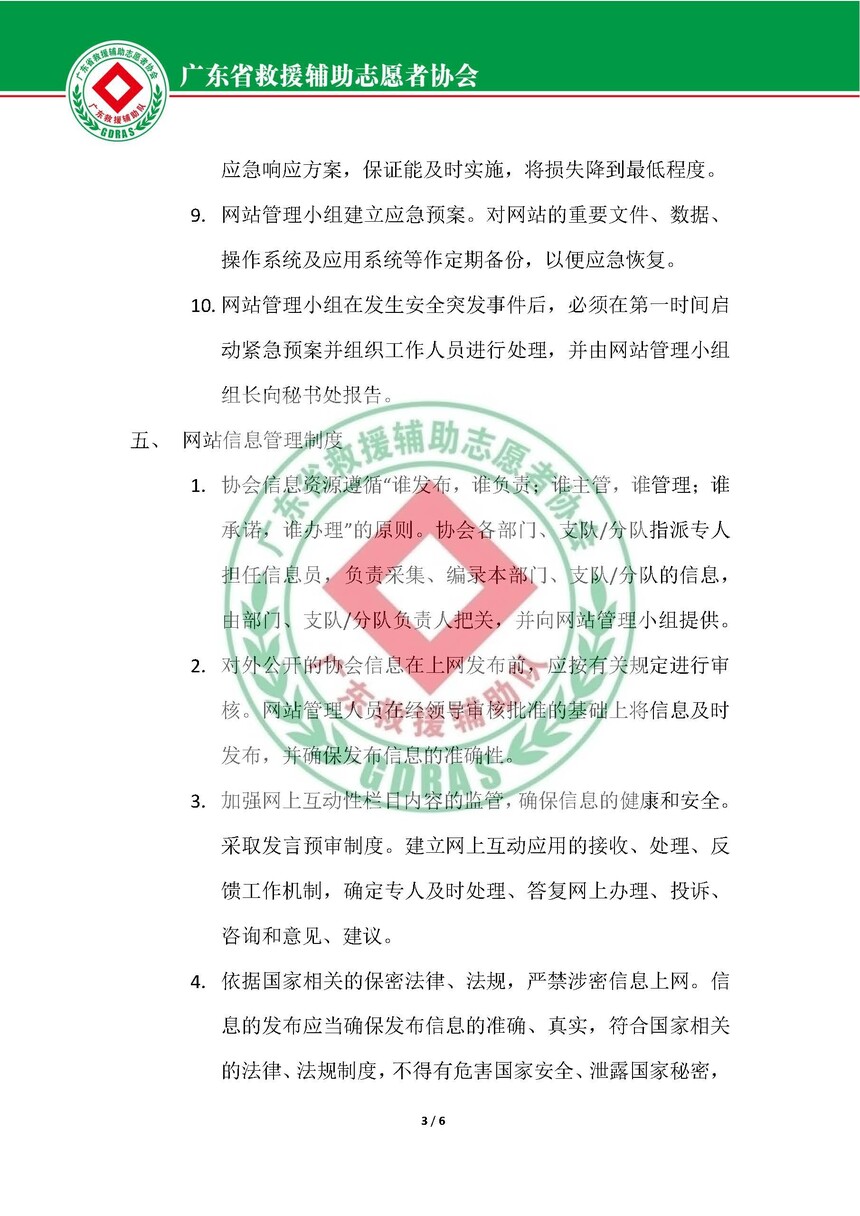 广东省救援辅助志愿者协会网站管理制度